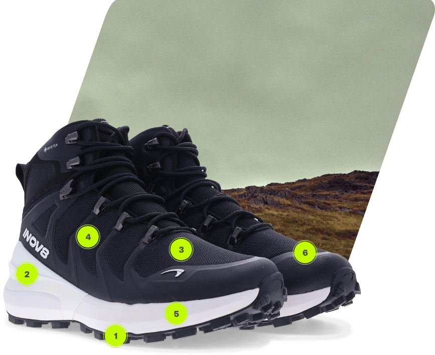 As with all of our ROCLITE range, the ROCLITE PRO MID GTX benefits from the signature 6mm cleat design. These cleats, made with graphene-enhanced rubber, provide tough, dependable grip on any surface. They will claw through soft mud to give you traction, or cling to wet rock during mountainous scrambles.