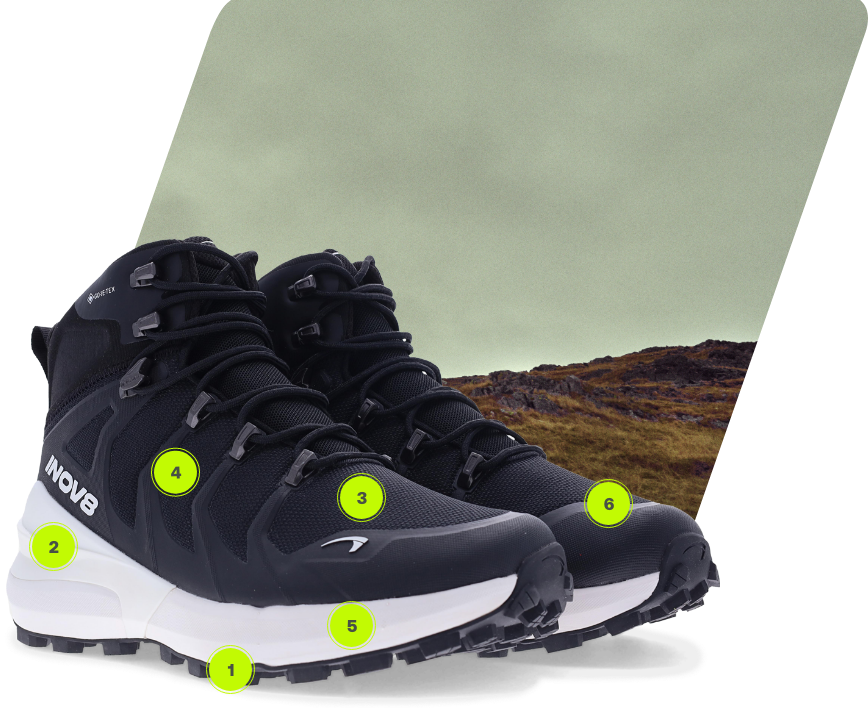 As with all of our ROCLITE range, the ROCLITE PRO MID GTX benefits from the signature 6mm cleat design. These cleats, made with graphene-enhanced rubber, provide tough, dependable grip on any surface. They will claw through soft mud to give you traction, or cling to wet rock during mountainous scrambles.
