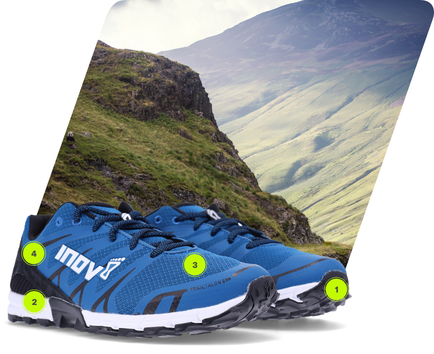 Moving at speed means less time to scan and spot hazards on the trail. Luckily the TRAILTALON 235 V3 has a toe bumper and a super-tough upper mesh, that's reinforced with welded film. The ultimate in protection from rocks, vegetation and tree roots.