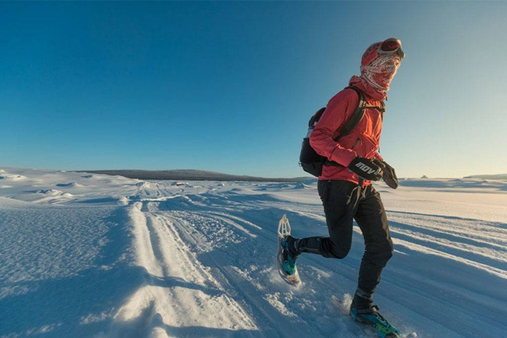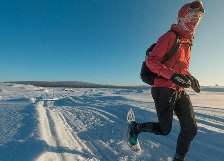 “I ran just about all of the course, except some of the sharp woodland climbs and the mountain on day 2, which I hiked. I wore snowshoes for about 30% of the time but was happier in just my INOV8 spiked running shoes. The snowshoes fit under your running shoes and help spread the load so you don’t sink into the snow.