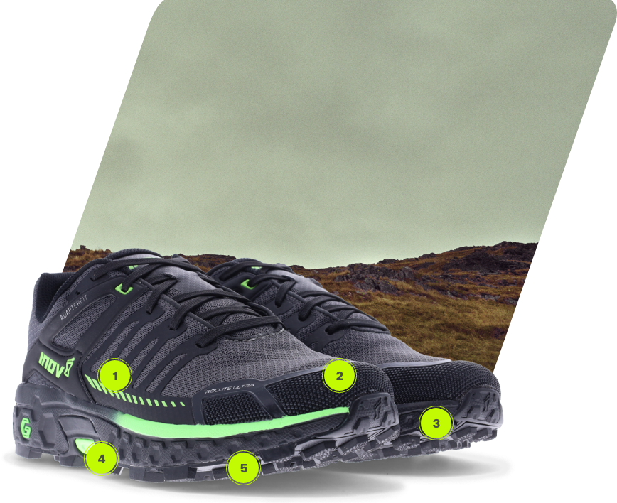 Feel stable and supported over rough terrain with the ADAPTER-FIT Cradle. This creates a locked-in feel by forming a supportive cradle between your foot and arch, helping to increase stability when running on difficult ground.