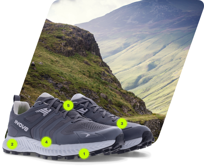 Get uncompromising grip on any terrain. 6mm graphene-infused rubber lugs give formidable grip and traction on soft, wet and hard surfaces. Shaped like the hoof pattern of a mountain goat, the lugs cling to any surface, then release just as quickly while propelling you on to your next stride.