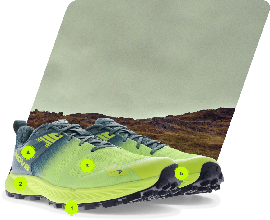 The TRAILTALON SPEED hugs the natural contours of your foot, locking you in at the heel and then widening at the toes. This anatomical fit allows your feet to splay and feel the ground, while still giving you that secure feel that you need when running fast.