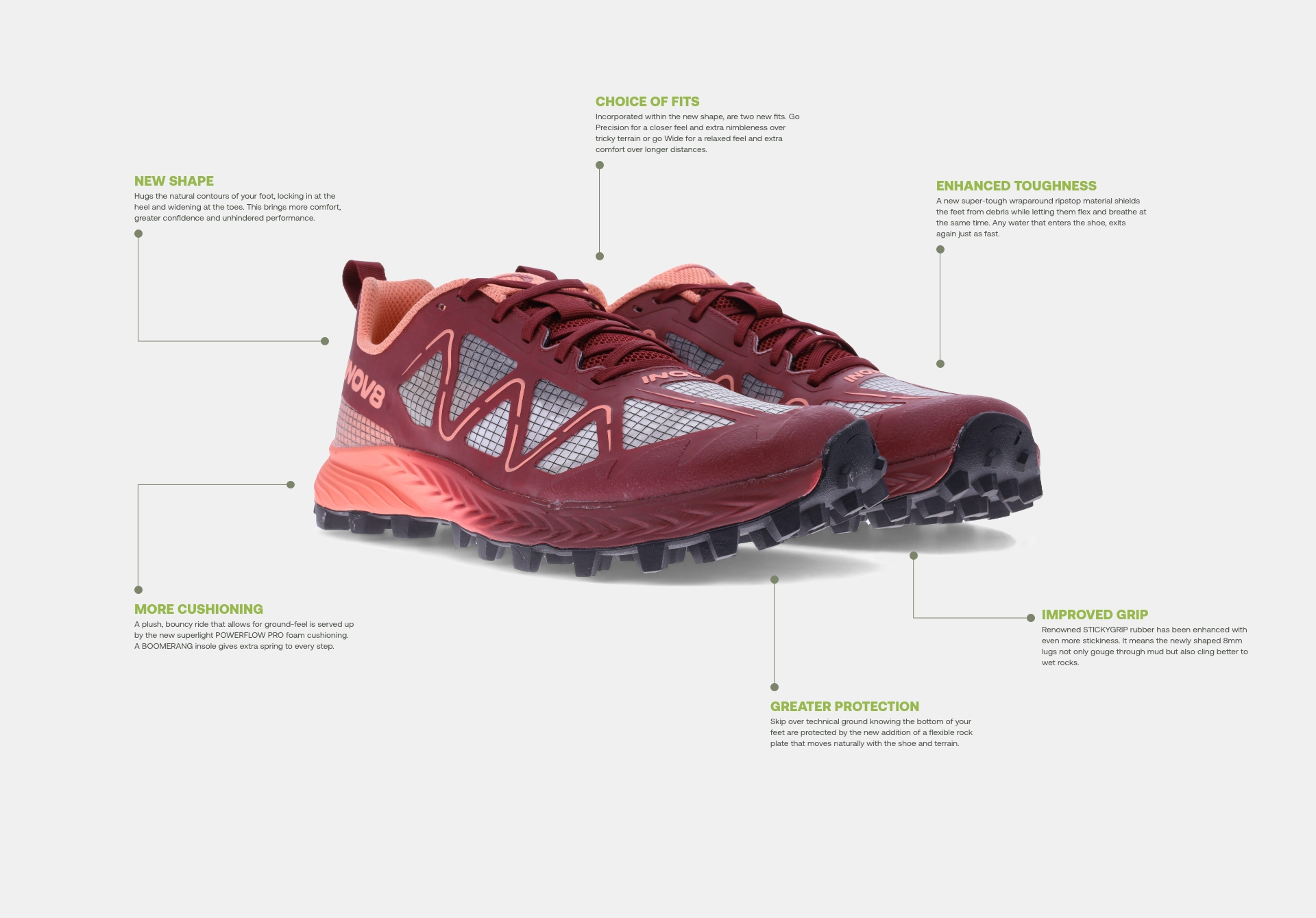 As well as boasting a new foot-contouring shape, the shoe is also available in two widths. Go Precision for a closer feel and extra nimbleness over tricky terrain or go Wide for a relaxed feel and extra comfort over longer distances.